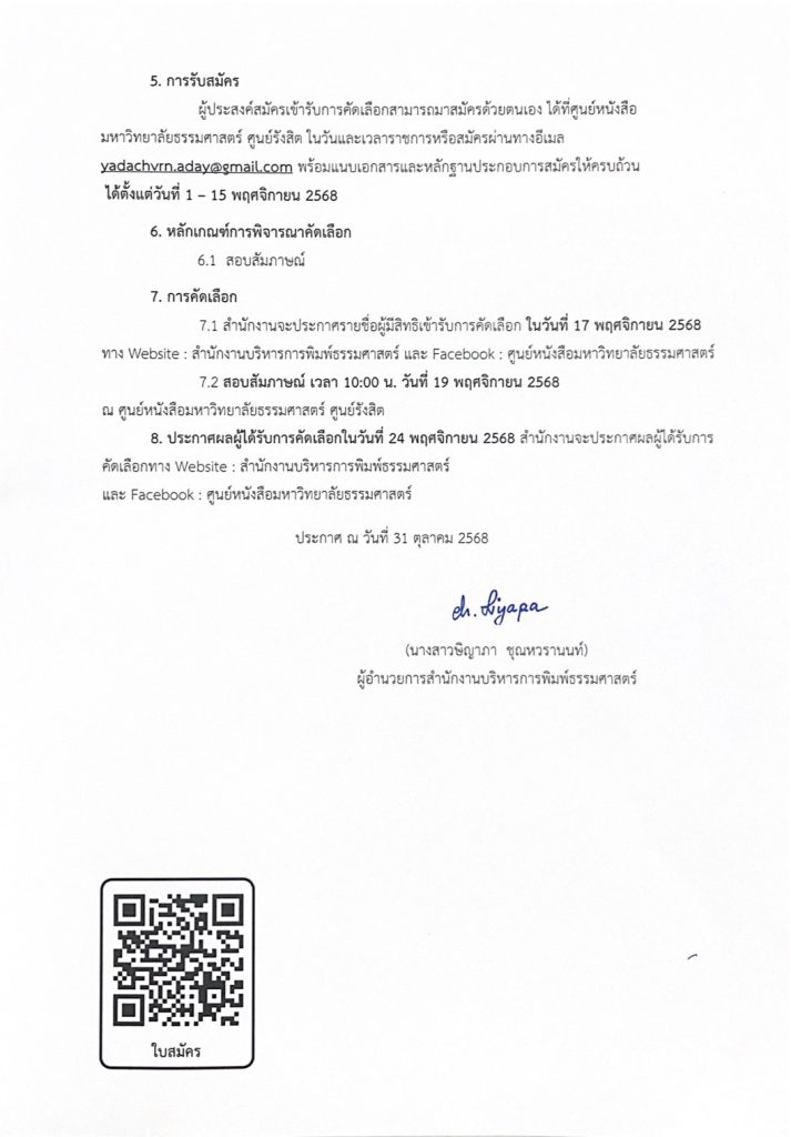ระยะเวลารับสมัคร: วันที่ 1-15 พฤศจิกายน 2568